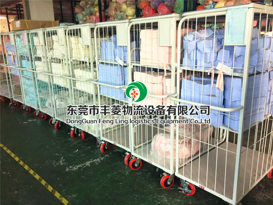 物流台车英文简称table trolley 。 物流台车又叫载货台车、周转车或笼车,是一种安装有四只脚轮的运送与储存物料的单元移动集装设备。常用于大型超市的物流配送或工厂工序间的物流周转。物流台车存放的产品陈列醒目,在运输中:一方面对物料的安全起到保护作用。另一方面不会使已分拣配备好的产品导致杂乱。装卸十分省力;轮子通常设计为两只定向轮,两只万向带刹车轮(常用脚轮有:4寸、5寸)以方便人工推行。